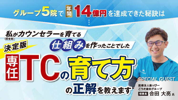 TC不在で属人化している医院と、誰が対応しても一定以上の説明・提案ができる医院では、患者満足・自費率・定着率に歴然とした差が出ます。